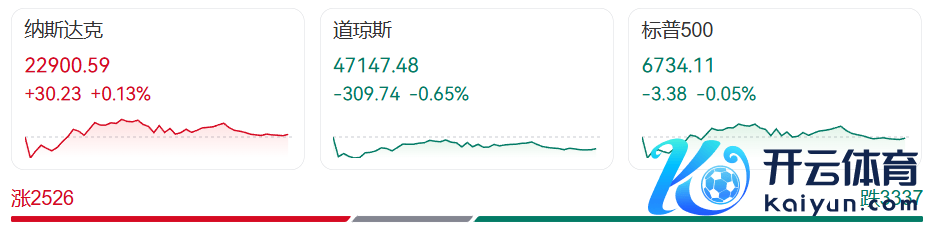 猖狂收盘,好意思股三大指数涨跌不一,谈琼斯指数跌0.65%,标普500指数跌0.05%,纳斯达克抽象指数涨0.13%。