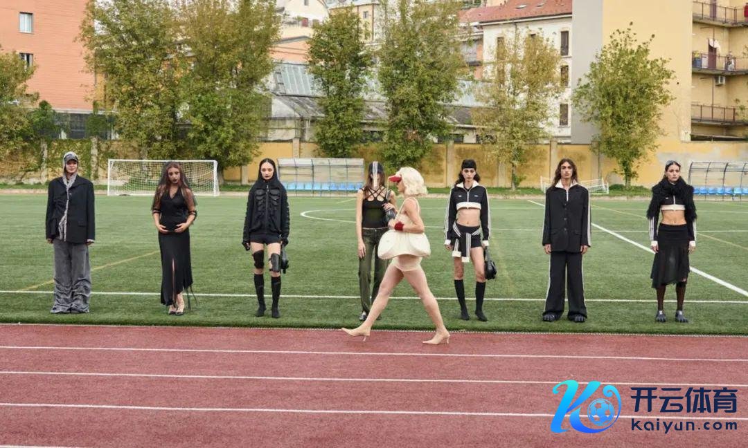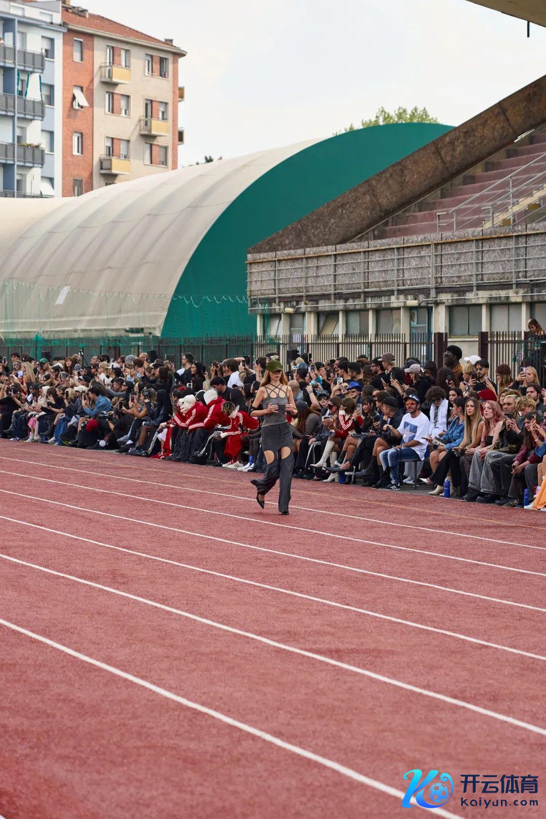模特?跑谈?竞走?没错,本季 AVAVAV 在著明的 Forza e Coraggio 体育场演出了一场充满体育元素的大秀。此外也恰是借此契机揭开了上头咱们刚刚先容过的与 adidas Originals 的初次相助。