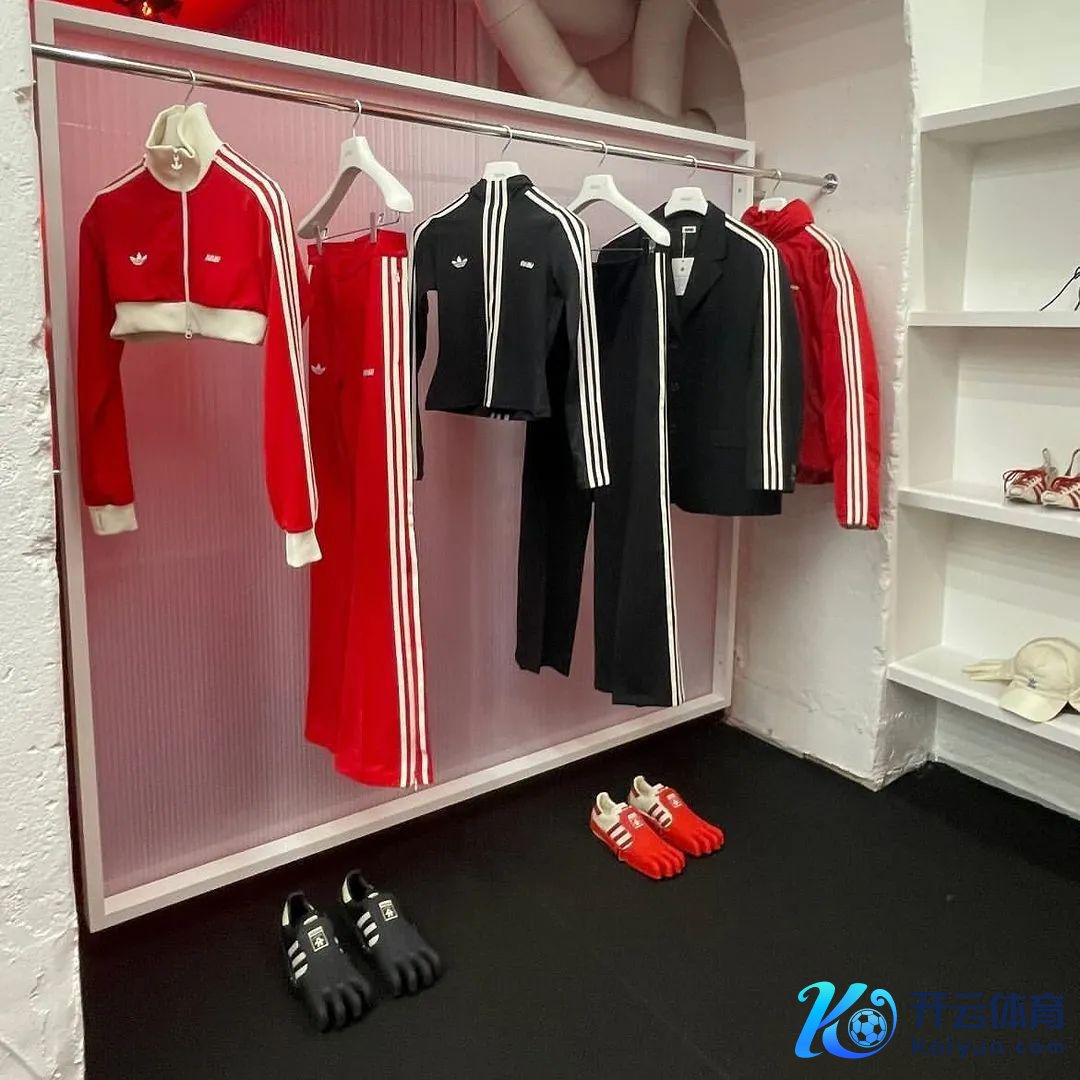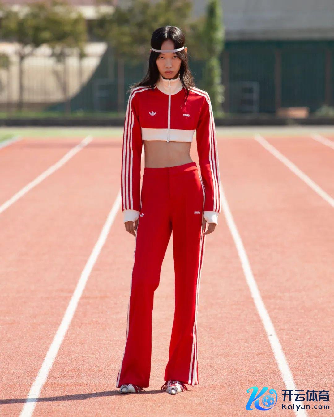 这次相助的调色盘围绕黑、红两色伸开,以 adidas 的档案经典单品 Beckenbauer Tracksuit 为灵感的预备成为最大主角,不外在版型上进行了绝顶的先锋化重塑,除了 Jennie 上身的超短露脐款以外,还包括西服和紧身衣等阵势,表示裤也改为了当下更为流行的微喇剪裁。