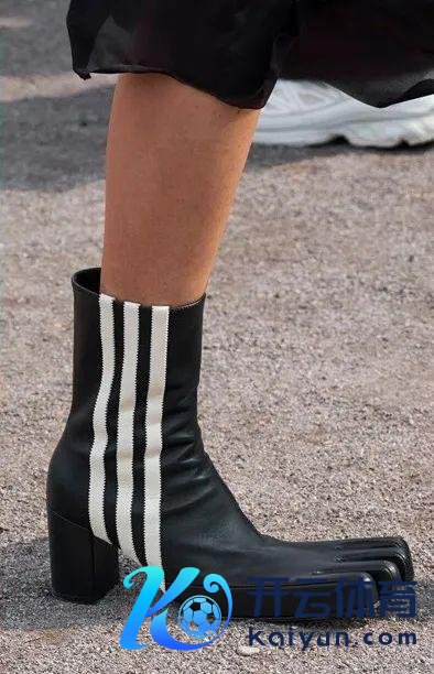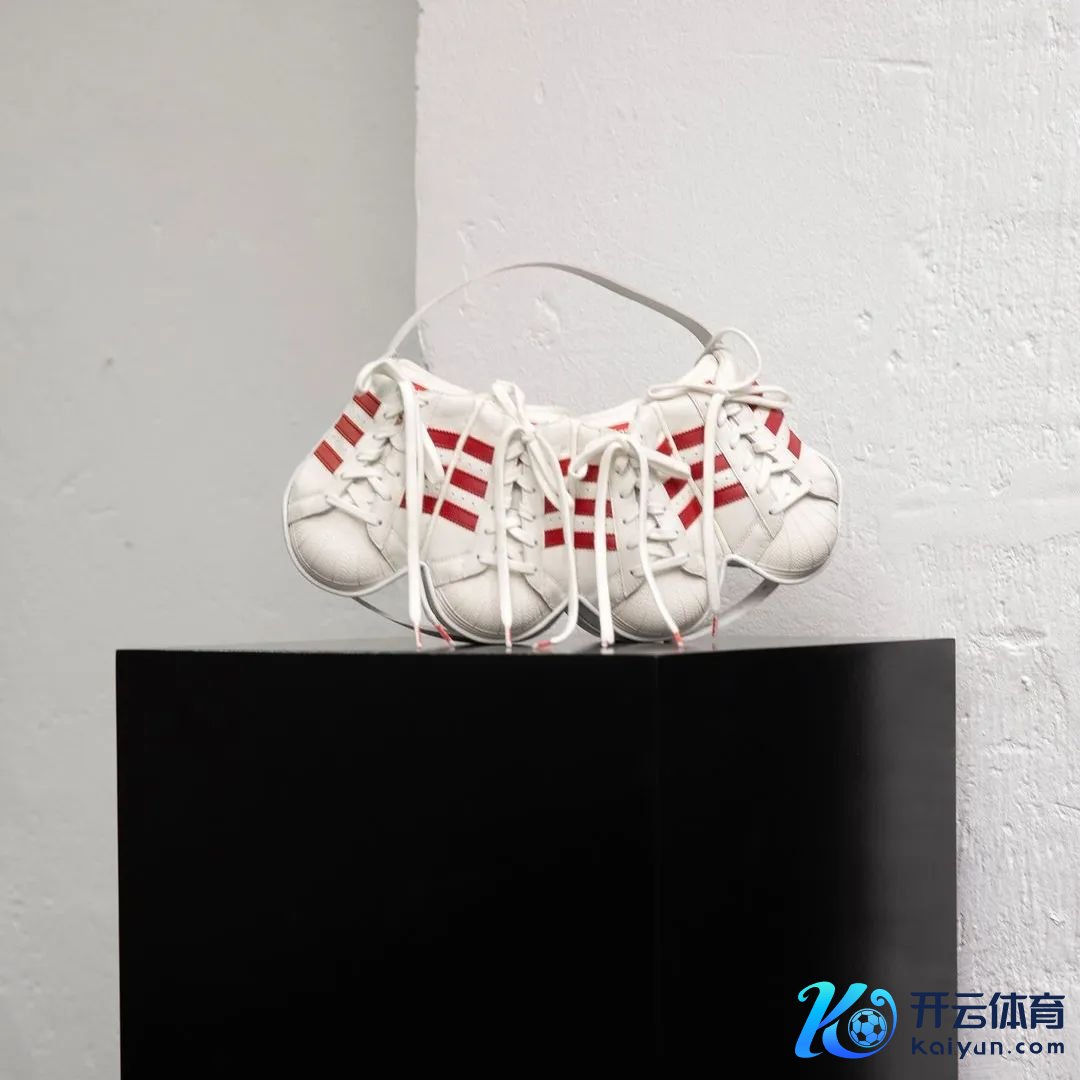 举例,AVAVAV 的最具代表性的 Larva 手袋与 Jennie 眼下的那双高跟鞋使用了相似的创作手法,接收切割后的 Superstar 裁片进行制作。违犯,Superstar 鞋款也被进行了俏皮化的再造,配有一个可拆卸的四趾鞋套配件。