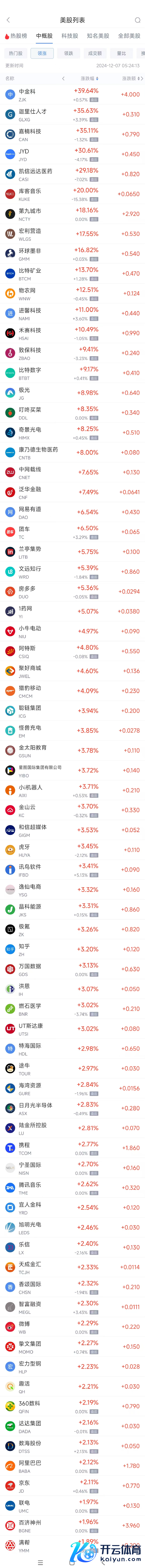 领涨中概股列表: