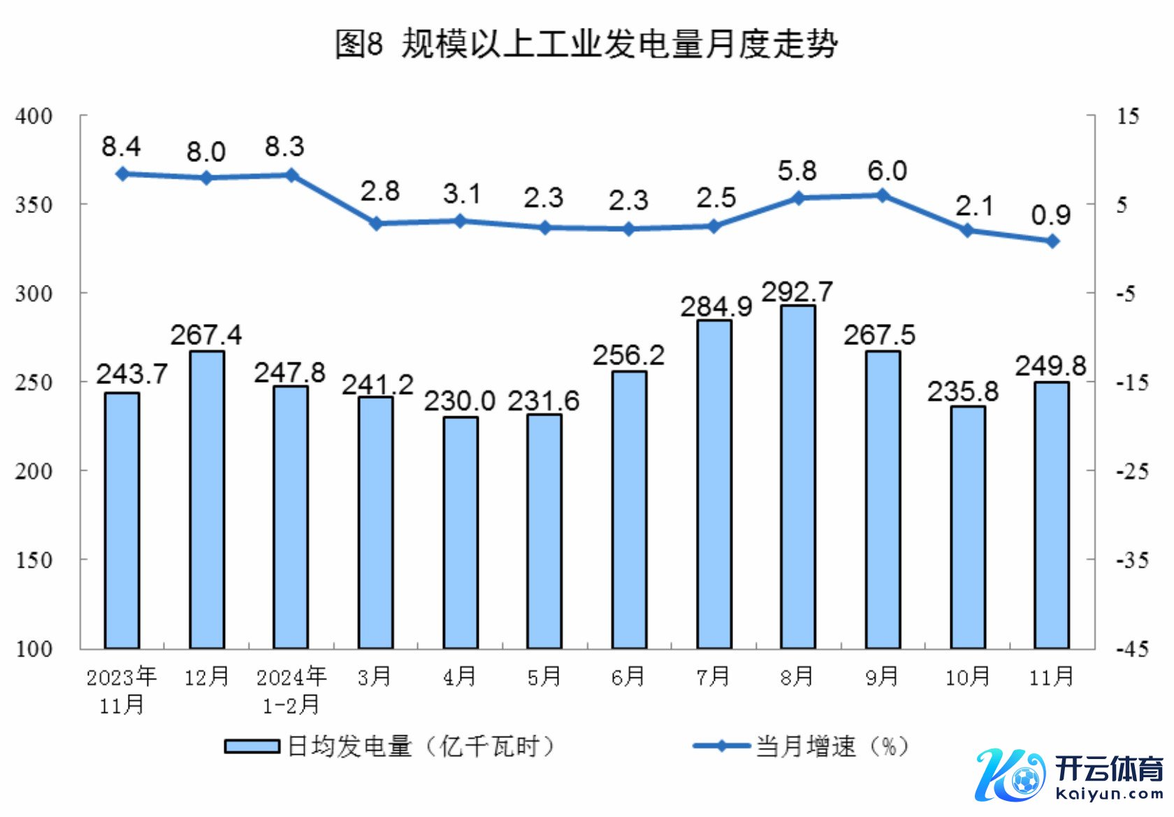 规上工业电力分娩自如增长。11月份,规上工业发电量7495亿千瓦时,同比增长0.9%;规上工业日均发电249.8亿千瓦时。1—11月份,规上工业发电量85687亿千瓦时,同比增长5.0%。