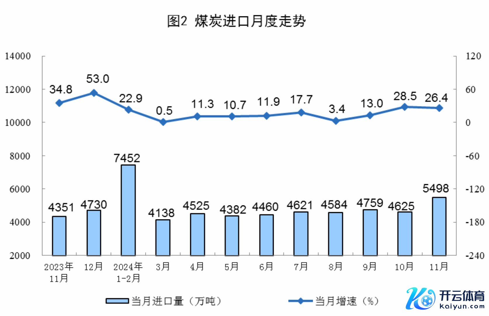 原煤分娩通晓增长。11月份,规上工业原煤产量4.3亿吨,同比增长1.8%;日均产量1426.6万吨。入口煤炭5498万吨,同比增长26.4%。