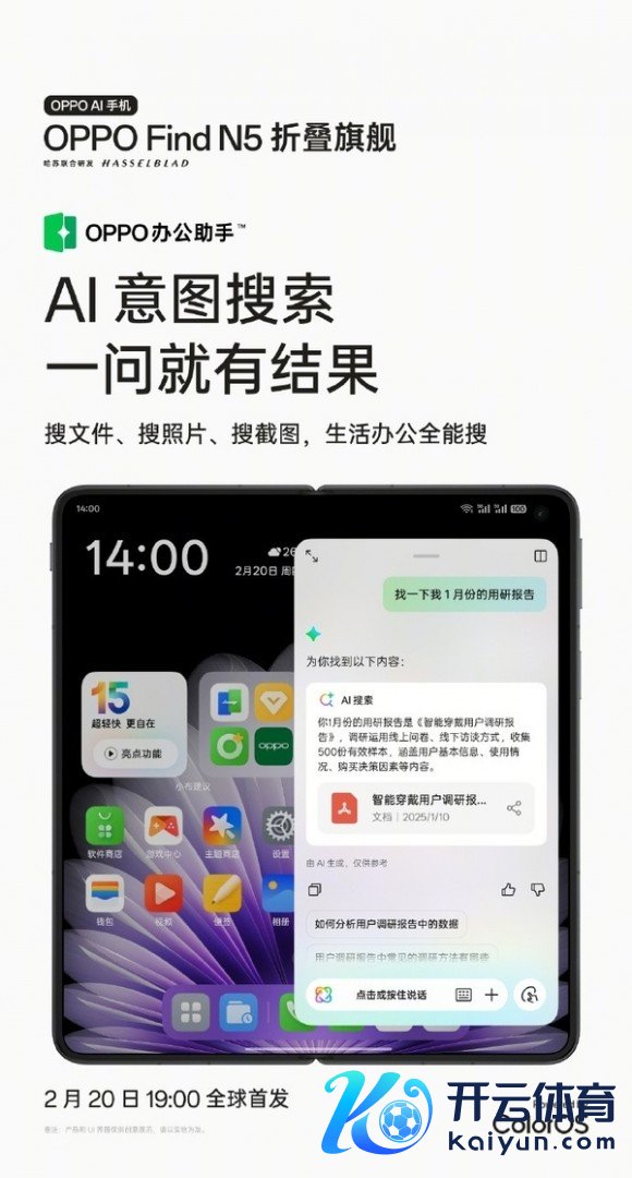 据OPPO官方最新发布的预热海报裸露,与此前曝光的音书基本一致,全新的OPPO Find N5将初度搭载AI意图搜索功能,将搜索能力与大讲话模子算法深度交融,为用户提供粉饰生涯、责任全场景的智能搜索体验。