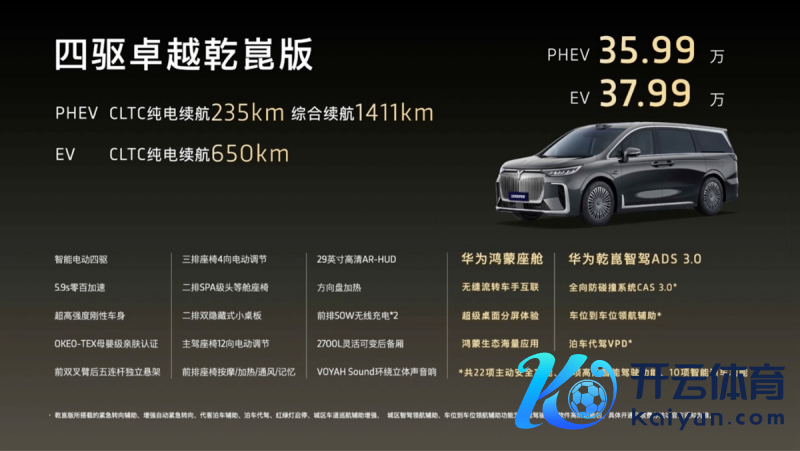 全新岚图梦念念家本日新增两款搭载华为乾崑智驾和鸿蒙座舱的新车型,差异为四驱超卓乾崑版与四驱尊贵乾崑版,共4款车型,售价区间为35.99-40.99万元。新车搭载了华为乾崑ADS 3.0高阶智驾系统,与华为鸿蒙智能座舱。