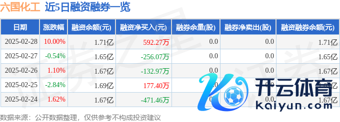 六国化工融资融券信息露出,融资方面,当日融资买入3137.12万元,融资偿还2544.86万元,融资净买入592.27万元。融券方面,融券卖出0.0股,融券偿还0.0股,融券余量0.0股,融券余额0.0万元。融资融券余额1.71亿元。