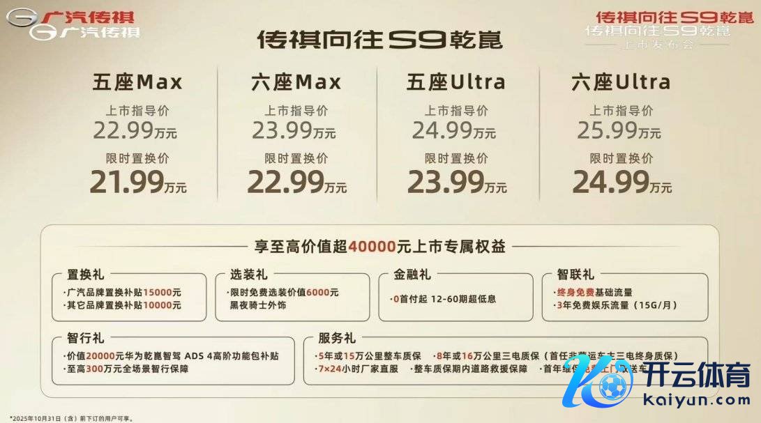 广汽传祺在 19 日晚发布了旗下的寰球庭 SUV九游体育娱乐网,传祺向往 S9 乾崑版。